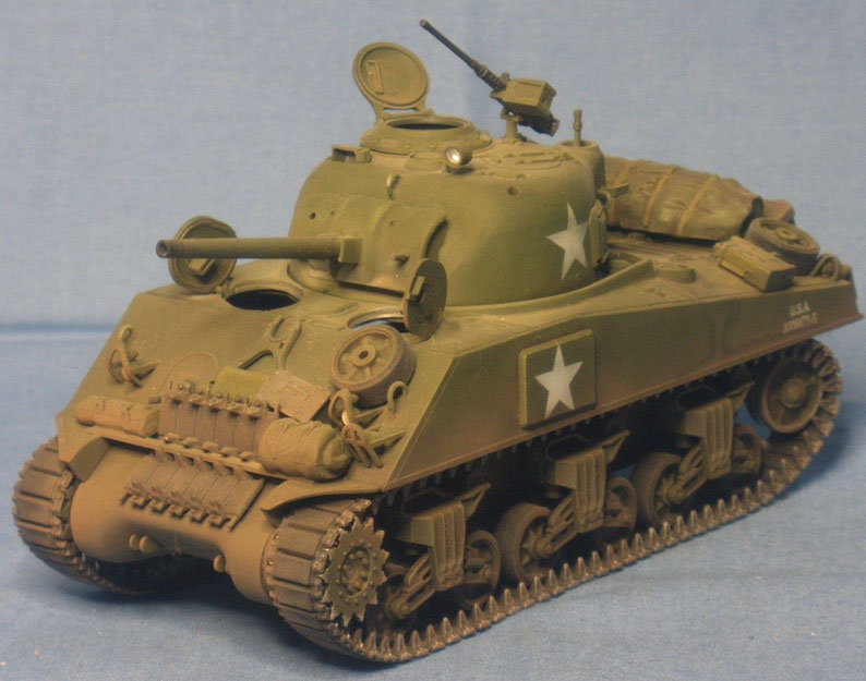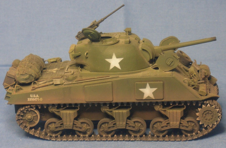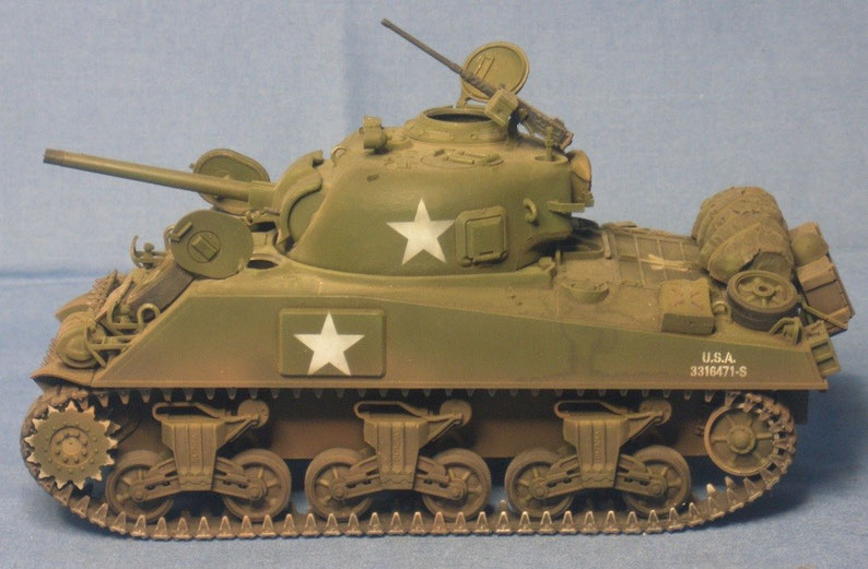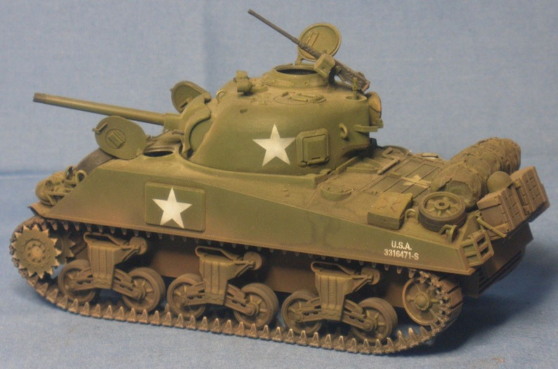 des Standart-Panzers der US Armee im II. Weltkrieg gesupert mit vielen Zusatzteilen. Das Modell basiert auf einem Tamiya-Bausatz.