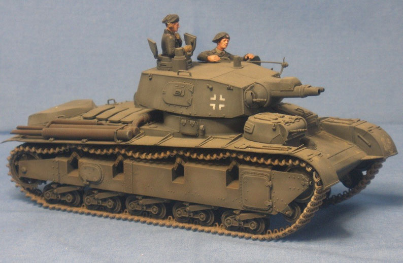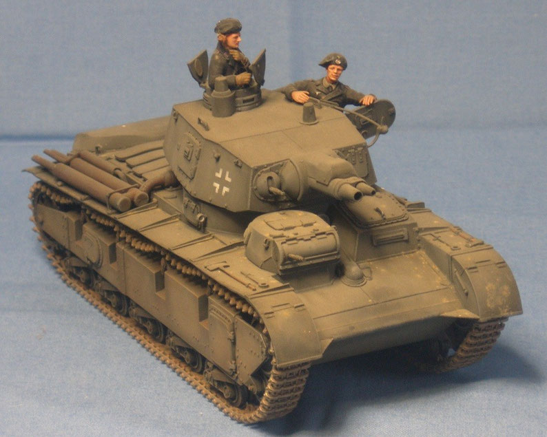 eines exotischen Kampfpanzers Typ Krupp der Deutschen Wehrmacht. Von dieser Baureihe existierten nur fünf Fahrzeuge in zwei Ausführungen, davon drei aus Panzerstahl. Das Modell basiert auf einem Resinbausatz von Cromwell.