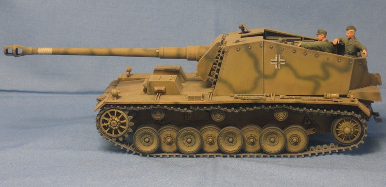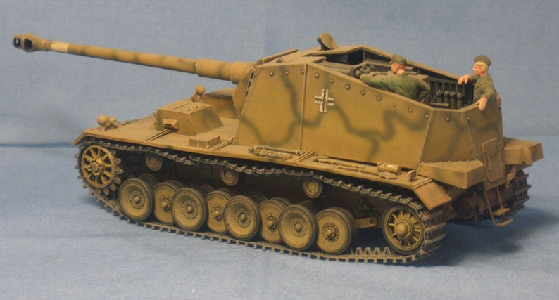 eines schweren Panzerjägers mit 12,8cm KWK L/61. Das Modell basiert auf einem der legendären Resinbausätze der Firma On Track mit einer Metallkette.