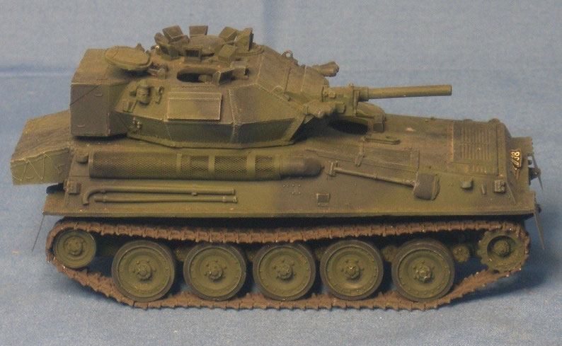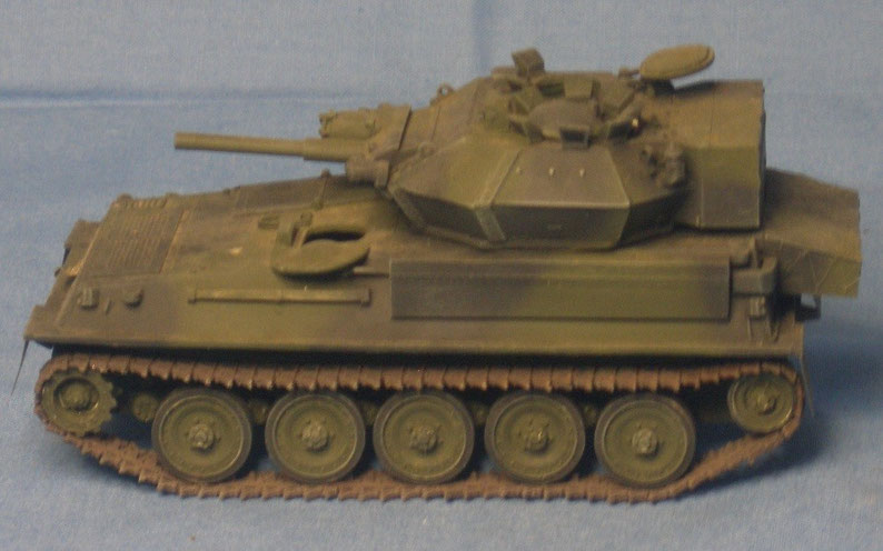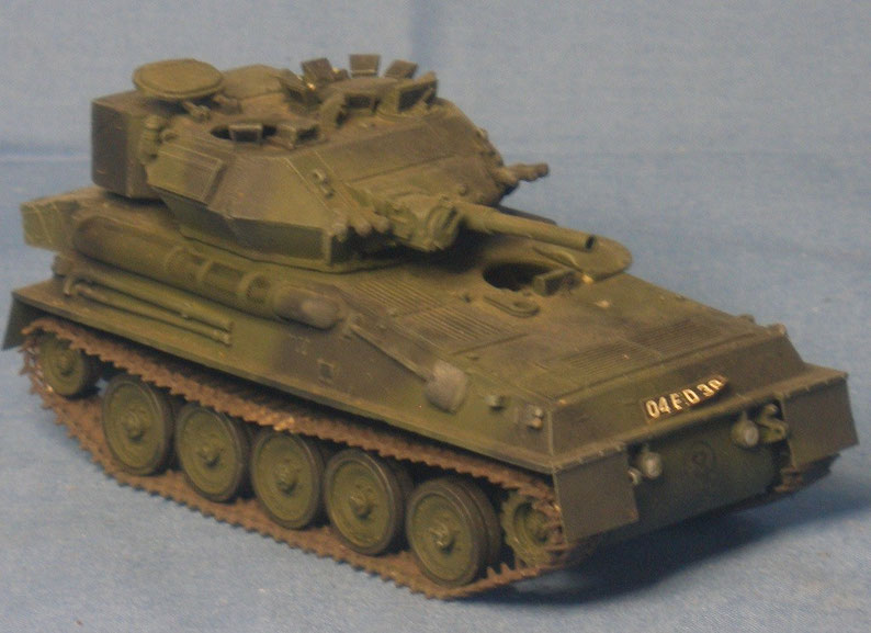 eines frühen Mitgliedes der englischen leichten Panzerfamilie in der Ausführung des Spähpanzers Scorpion mit der 76mm Kanone. Das Modell basiert auf einem Resinbausatz von Accurate Armour.